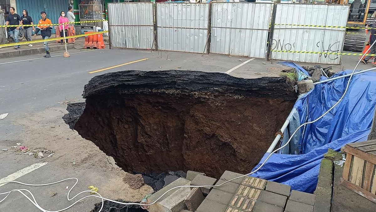 Jalan di Tabanan Ambles Akibatkan Lubang Menganga, Jalur Denpasar-Gilimanuk Ditutup